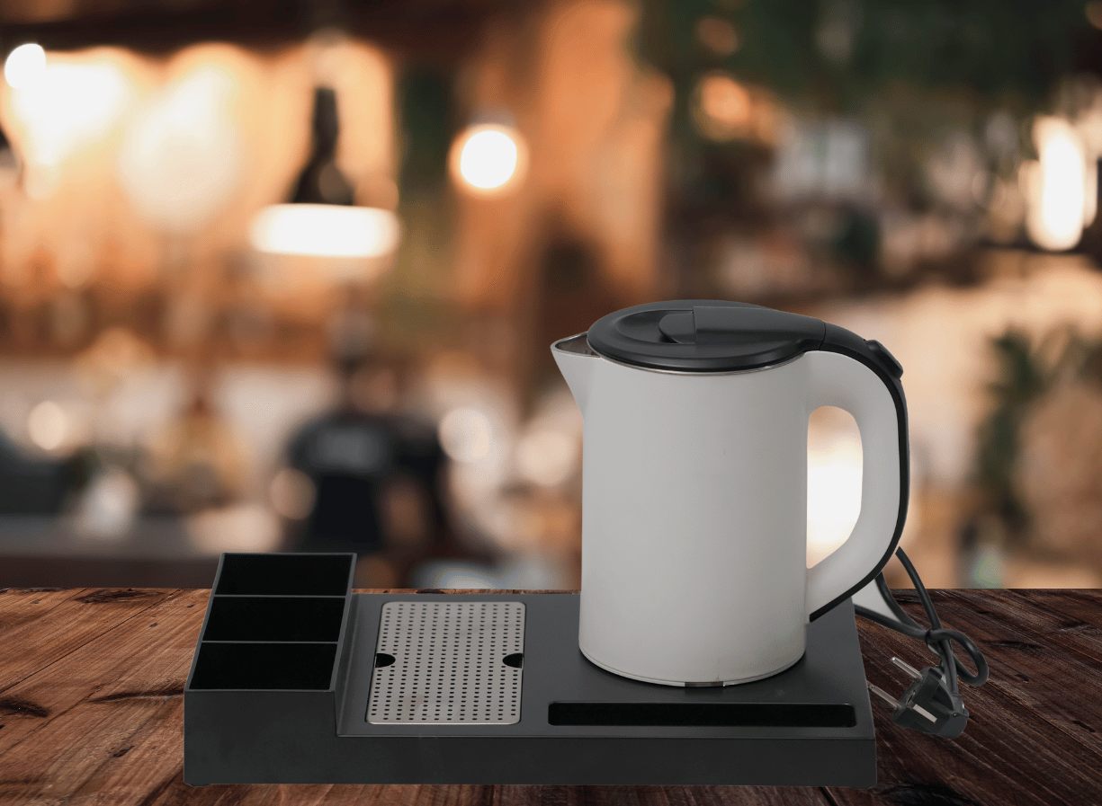 TCM Maker (Tea / Coffee Maker) specially hotels, resorts, service apartments aur guest rooms ke liye design kiya gaya ek complete tea–coffee preparation set hai. Isme guest ke convenience ke liye electric kettle ya heating unit, rectangular TCM tray, aur tea–coffee essentials ek hi jagah neatly arranged hote hain. Yeh set guest ko room ke andar hi fresh tea ya coffee banane ki suvidha deta hai, saath hi room ko professional aur premium look bhi deta hai. TCM Maker me auto cut-off safety feature, durable material tray, aur easy-to-clean design hota hai, jo hospitality use ke liye bilkul suitable hai.